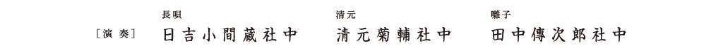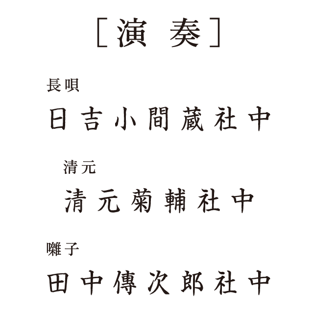 襲名披露など特別な公演につきものの儀式舞踊で、通常、舞台を清める意味を込め冒頭に上演されます。能楽の「翁」という神聖な曲を基に作られた三番叟物の一つで、前半は翁と千歳による荘重な舞、後半は国土安穏や五穀豊穣を祈る三番叟の踊りが見どころとなります。