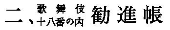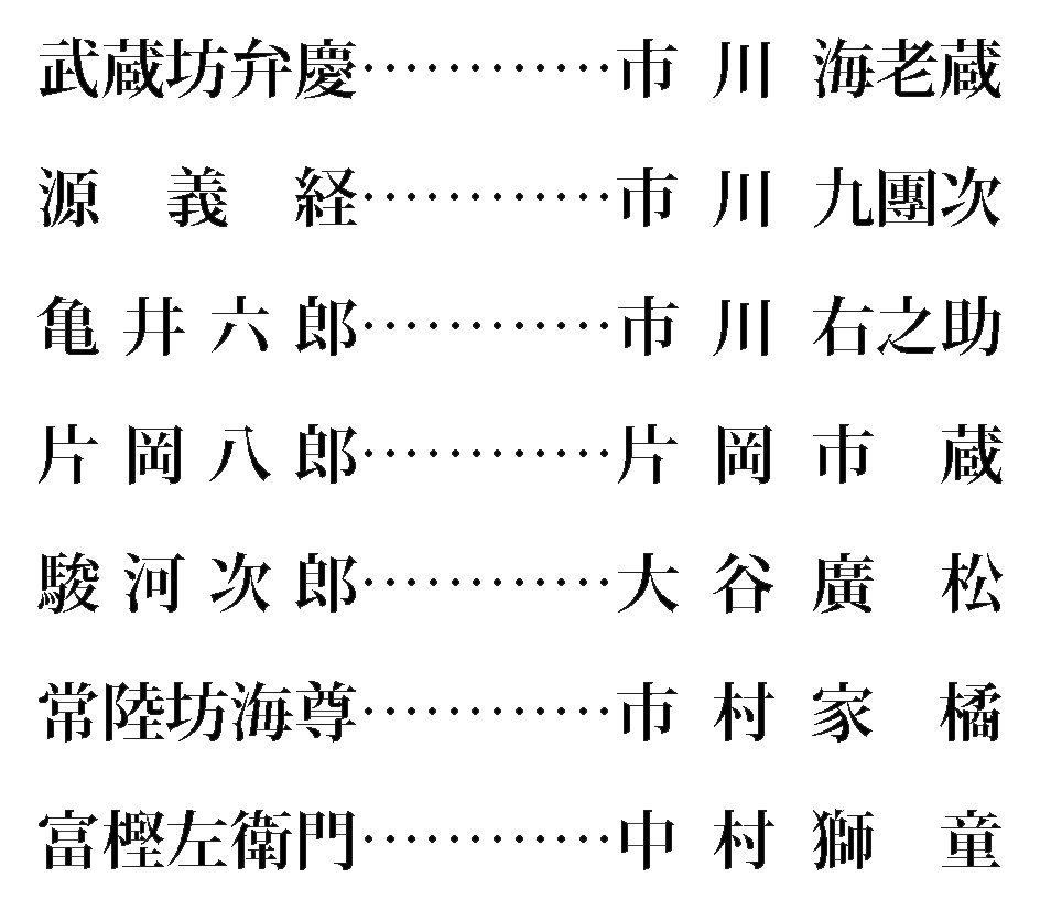 本作品は、能の「安宅」を題材とした長唄の舞踊劇で、天保十一年(1840年)三月、江戸河原崎座で初演されました。作者は三世並木五瓶、四世杵屋六三郎(後の六翁)の作曲、四世西川扇蔵の振付により、七世市川團十郎が初演、これを九世團十郎が洗練して、今日の歌舞伎屈指の人気演目として上演を重ねています。