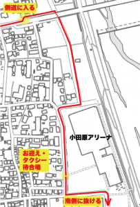 アリーナ北側「富士道橋」側道より回り、南側混雑を避けていただきますようお願いいたします。